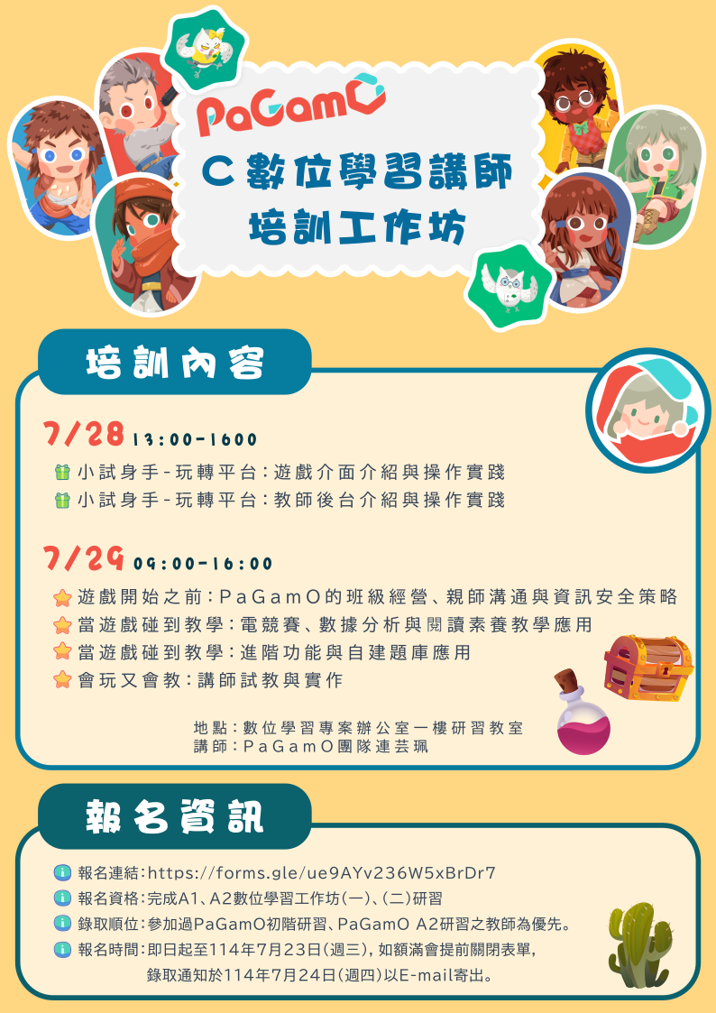 錄取順位:參加過PaGamO初階研習、PaGamO A2研習之教師為優先