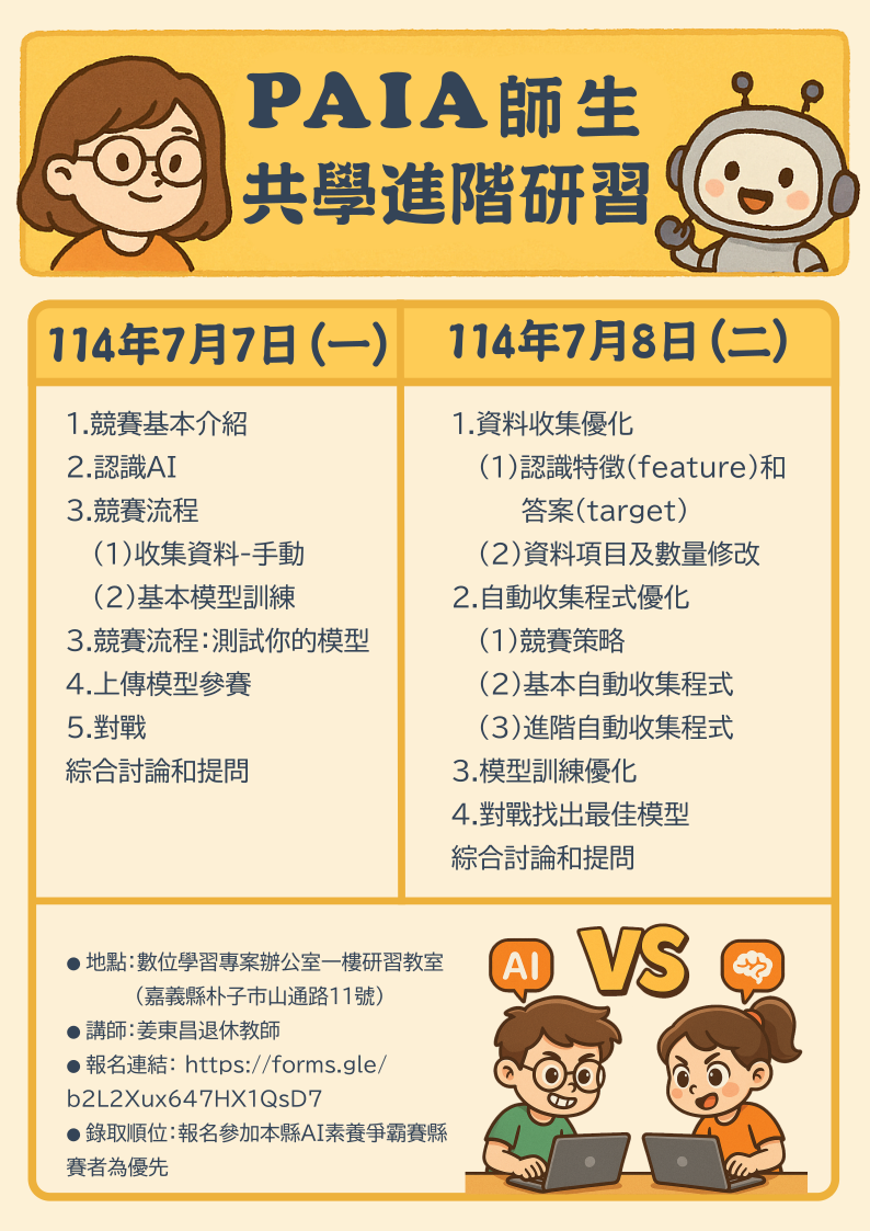 錄取順位:報名參加本縣AI素養爭霸賽縣賽者為優先