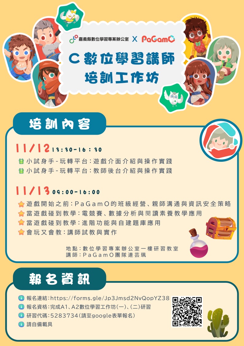 研習主題:【精進數位】PaGamO C數位學習講師培訓工作坊